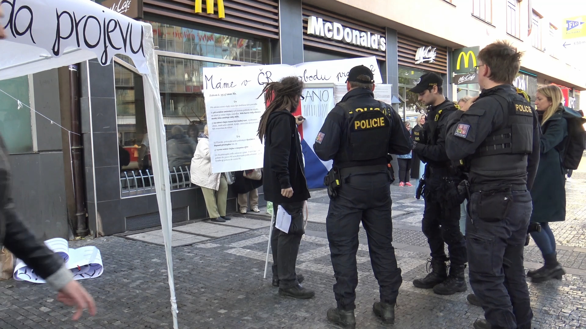 Koupil jsem tedy velkou tabuli, postavil se s ní na rušné místo v centru Prahy, připevnil na ní českou vlajku, nápis „Máme v ČR svobodu projevu?“ a na základě odpovědí kolemjdoucích dělal čárky – ano na bílou, ne na červenou a ostatní na modrou; kdo odpověděl ano, toho jsem se pak zeptal, proč když máme svobodu projevu, porušuji zákon tím, že takto zapíšu odpověď. Ačkoliv mám informace o tom, že si policajti někdy stoupnou před hokejový stadion a pokutují fanoušky za vlajky s nápisy měst, tady kolem mě prošla spousta hlídek – některým jsem dokonce položil otázku a odpověď zapsal na vlajku přímo před jejich očima – a nepřišla žádná reakce; myslím, že roli hrálo především to, že je snadné získat rychlou pokutu od vystrašeného fanouška po pár pivech, kterému pohrozí 30 tisíci, ale jsou „ochotni to vyřešit za pětikilo“, zatímco člověk, který se zjevně připravil, očekává zásah a ještě to celé nahrává několik kamer, nebude nejspíš snadná oběť.