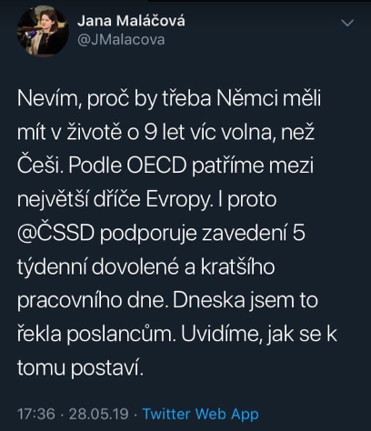 Maláčová je tak ekonomicky neznalá, že je to až bizár. Její názory a kroky, které se snaží prosazovat a z části se jí to bohužel i daří, vedou k ekonomickému i morálnímu úpadku. Vedou k chudobě, strádání a hodnotovému rozkladu. Vše, co Maláčová prosazuje, lidem škodí. Kvůli Maláčové se máme hůř. Kvůli Maláčové jsme všichni chudší. Není potřeba moc přemýšlet, aby člověk pochopil, že když bude pracovat místo 8 hodin 7 a nijak nenavýší svoji efektivitu, vyprodukuje méně. Pokud bude mít místo 4 týdnů dovolené 5, někde se na ten týden navíc musí ty zdroje vzít. Mimoto, někteří ti zlí kapitalisté, které chce Maláčova vymýtit, těch 5 týdnů dávají sami od sebe. Dávají to, aniž by je někdo nutil. Nedávají to z lásky. Dávají to, protože je k tomu nutí trh. Nutí je k tomu chtění těch, kteří pro ně pracují. Dobrovolně a ve vzájemné spolupráci. Tohle je rozdíl mezi kapitalismem a socialismem. Dobrovolnost a donucení. Maláčová si není vědoma následků svých kroků. Vidí jen to, co vidět je. Dobrý ekonom vidí nejen to, co vidět je, ale i to, co vidět není.
