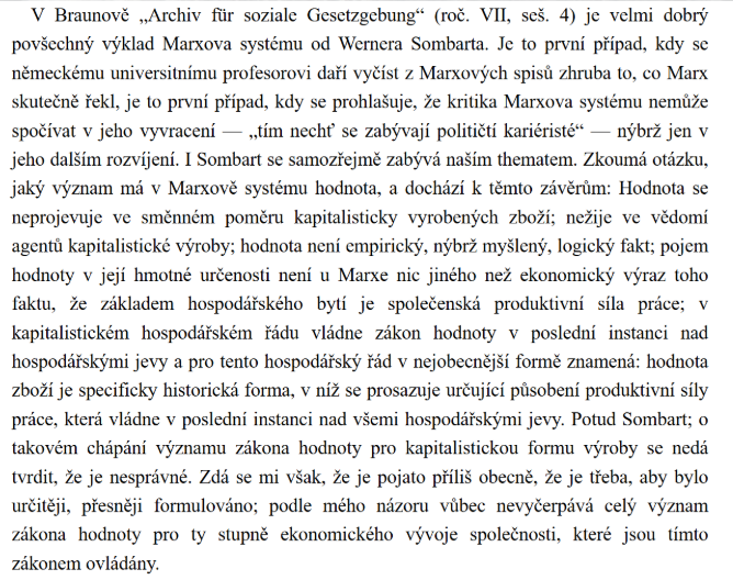 Detailní odpověď na Sombartovu apologii je součástí Böhm-Bawerkova spisu. Tady jen dodáme, že jestli byl Sombart tím, kdo Marxe pochopil, tak jeho další intelektuální vývoj svědčí o tom, že chápání marxismu není žádnou zárukou integrity. Během První světové války publikoval nacionalistickou propagandu Händler und Helden a dožil se i nástupu nacismu, který oslavil chvalozpěvem na Hitlera.